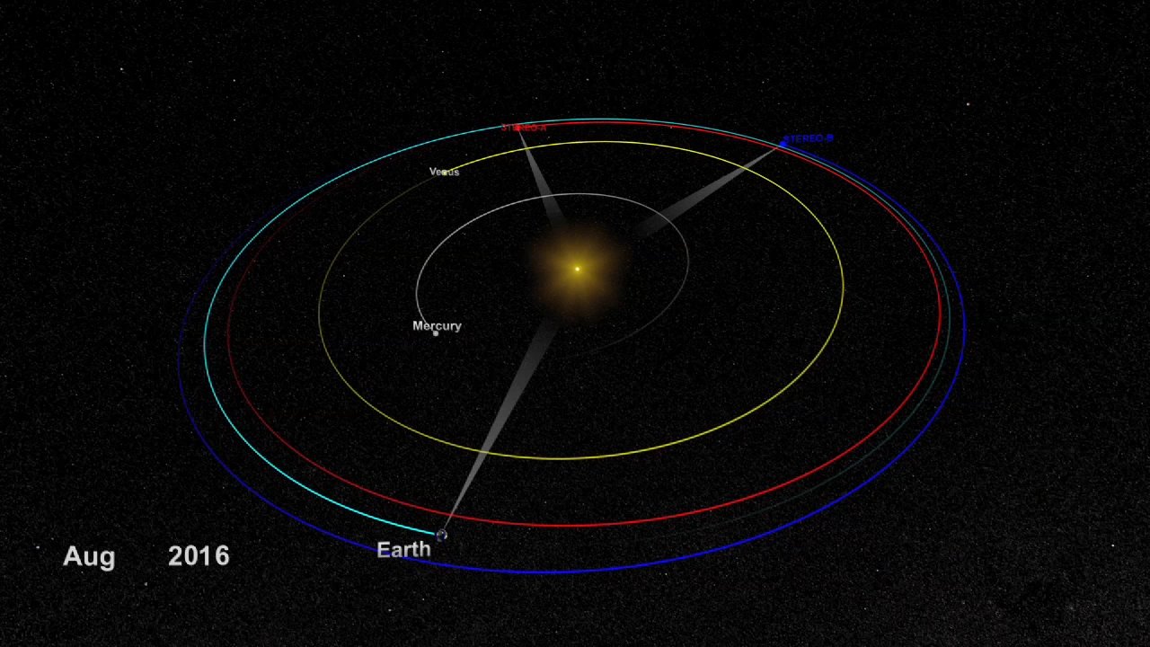 Pozycje sond STEREO w sierpniu 2016 względem Ziemi / Credits - NASAPo ponad 22 miesiącach NASA nawiązała kontakt z sondą STEREO-B.