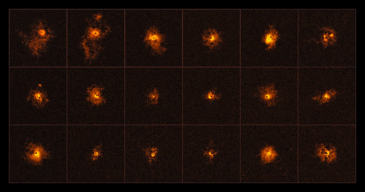 Międzynarodowy zespół naukowców odkrył świecące obłoki gazu otaczające odległe kwazary. Nowy przegląd wykonany przy pomocy instrumentu MUSE na teleskopie VLT wskazuje, że halo wokół kwazarów są znacznie powszechniejsze niż sądzono. Na dodatek własności halo nie są zgodne z obecnie akceptowanymi teoriami na temat powstawania galaktyk we wczesnym Wszechświecie.Międzynarodowa grupa badawcza astronomów, kierowana przez Swiss Federal Institute of Technology (ETH) w Zurychu (Szwajcaria), wykorzystała moc obserwacyjną MUSE na Bardzo Dużym Teleskopie (VLT) w Obserwatorium Paranal do zbadania gazu wokół odległych galaktyk aktywnych, widzianych w czasie mniejszym niż dwa miliardy lat po Wielkim Wybuchu. Te galaktyki aktywne, zwane kwazarami, zawierają w swoich centrach supermasywne czarne dziury, które w niesamowicie wysokim tempie pochłaniają gwiazdy, gaz i inną materię. W efekcie powoduje to, że centrum galaktyki emituje olbrzymie ilości promieniowania, czyniąc kwazary najjaśniejszymi i najbardziej aktywnymi obiektami we Wszechświecie.