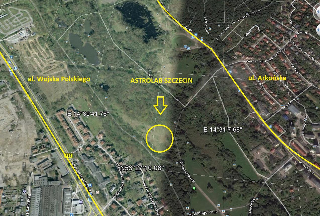 Mapka przedstawia lokalizację Szczecińskiego obserwatorium astronomicznego. Źródło: Astrolab - http://astrolab.szczecin.plPomysł na budowę w Szczecinie obserwatorium astronomicznego i planetarium, mających służyć celom edukacyjnym, zaprezentowano podczas konferencji dla nauczycieli, która odbyła się w Zachodniopomorskim Centrum Doskonalenia Nauczycieli.