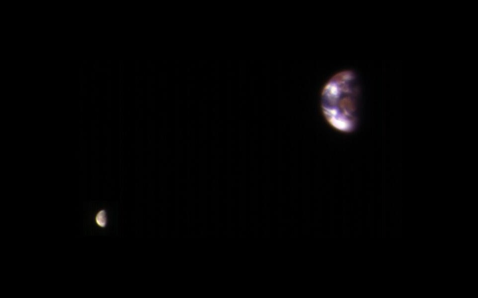 Ziemia i Księżyc obserwowane przez instrument HiRISE / Credits - NASA/JPL-Caltech/Univ. of ArizonaJak wygląda Ziemia z Marsa? Sonda Mars Reconnaissance Orbiter wykonała pod koniec listopada 2016 zdjęcia naszej planety i Księżyca przy użyciu teleskopu HiRISE.