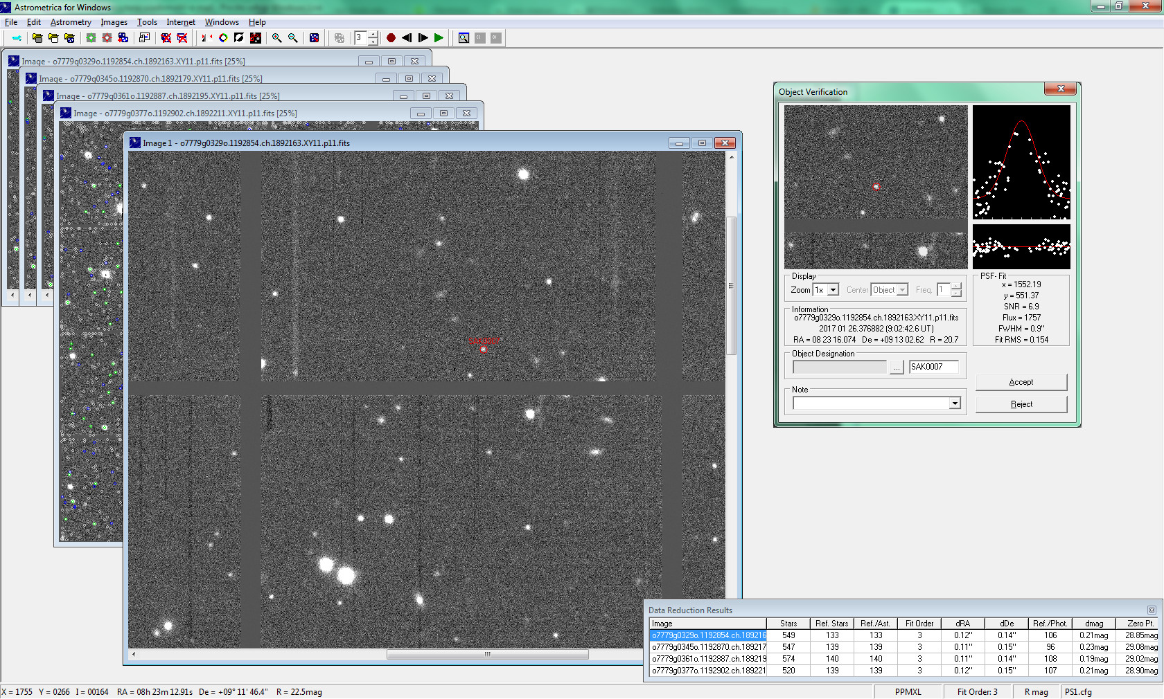 Animacja jednej z odkrytych planetoid SAK0007 o tymczasowym oznaczeniu międzynarodowym P10yObfPlanetoidy otrzymały oznaczenia robocze: P10yObf , P10yOiQ , P10yWJK , P10yWQ2 , P10yWYo , P10yXbv , P10z53s. I będą czekały na wyznaczenie dokładnych orbit by potem otrzymać już stałe nazwy. Proces może potrwać nawet kilka lat, ale najważniejsze jest to, że odkryte planetoidy w projekcie IASC to obiekty bliskie Ziemi (NEO od ang. Near-Earth objects). To potencjalna grupa obiektów kosmicznych mogących w przyszłości zderzyć się z nasza planetą. Położenie każdego z nich jest dla ziemian i astronomów niezwykle ważne by móc podejmować działania zapobiegające katastrofie o skali globalnej lub lokalnej jak w przypadku Czelabińska. Aby móc cokolwiek uczynić, trzeba najpierw wszystko wiedzieć o takich obiektach NEO.
