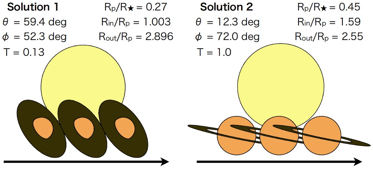 Możliwy wygląd pierścieni w układzie KIC 10403228 / Credits - Aizawa et al.Analiza danych zebranych z teleskopu Kepler pozwala na wyznaczenie egzoplanet, wokół których mogą krążyć pierścienie. Jednym z kandydatów jest KIC 10403228.