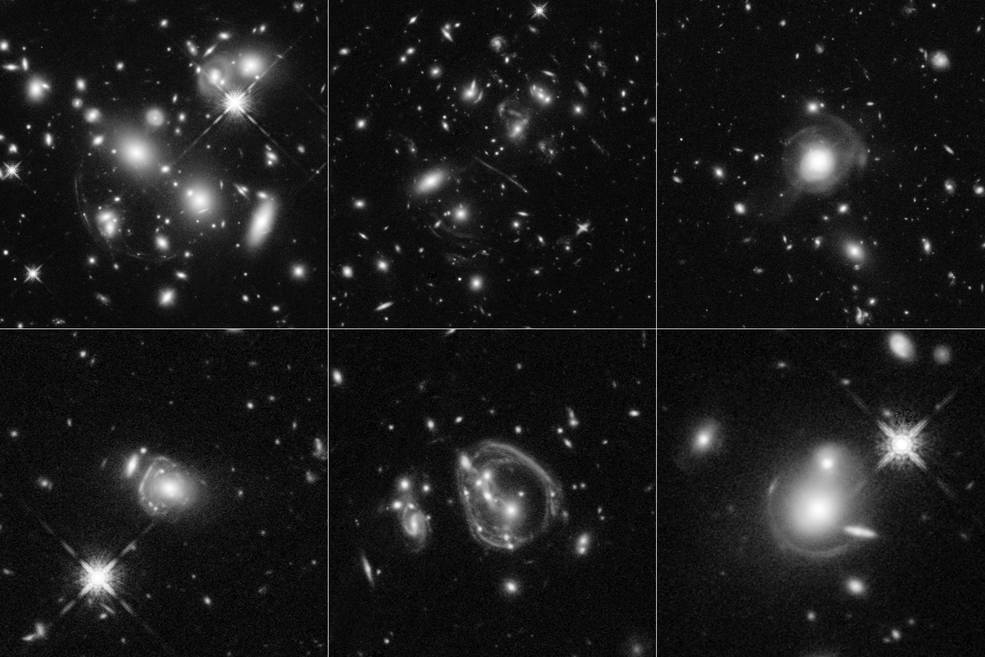 OpisZdjeciaWzmocniony przez naturalne soczewki powiększające w przestrzeni, Hubble Space Telescope zdobył unikalne widoki makro najjaśniejszych w podczerwieni galaktyk wszechświata, które są aż 10000 razy jaśniejsza niż nasza Droga Mleczna. Te obrazy galaktyk, powiększone przez zjawisko zwane soczewkowanie grawitacyjne odsłania splątaną sieć zniekształconych obiektów przerywane przez egzotyczne wzory, takie jak pierścienie i łuki.