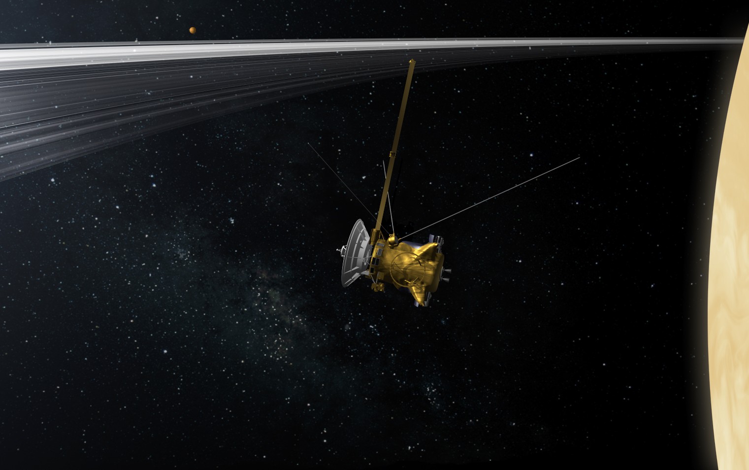Europejsko-amerykańska misja Cassini rozpoczęła się w 1997 roku. Przez kolejne siedem lat sonda zmieniała swoją trajektorię, poprzez serię przelotów, by wreszcie dotrzeć do Saturna. Wreszcie, w 2004 roku Cassini dotarł do Saturna. Przez kolejne lata orbiter krążył wokół tego gazowego giganta, jego pierścieni i dziesiątek księżyców. Dzięki tej sondzie udało się wyjaśnić wiele tajemnic tego układu ? m.in. potwierdzić obecność istnienia cieczy na Tytanie oraz wykryć gejzery na Enceladusie.