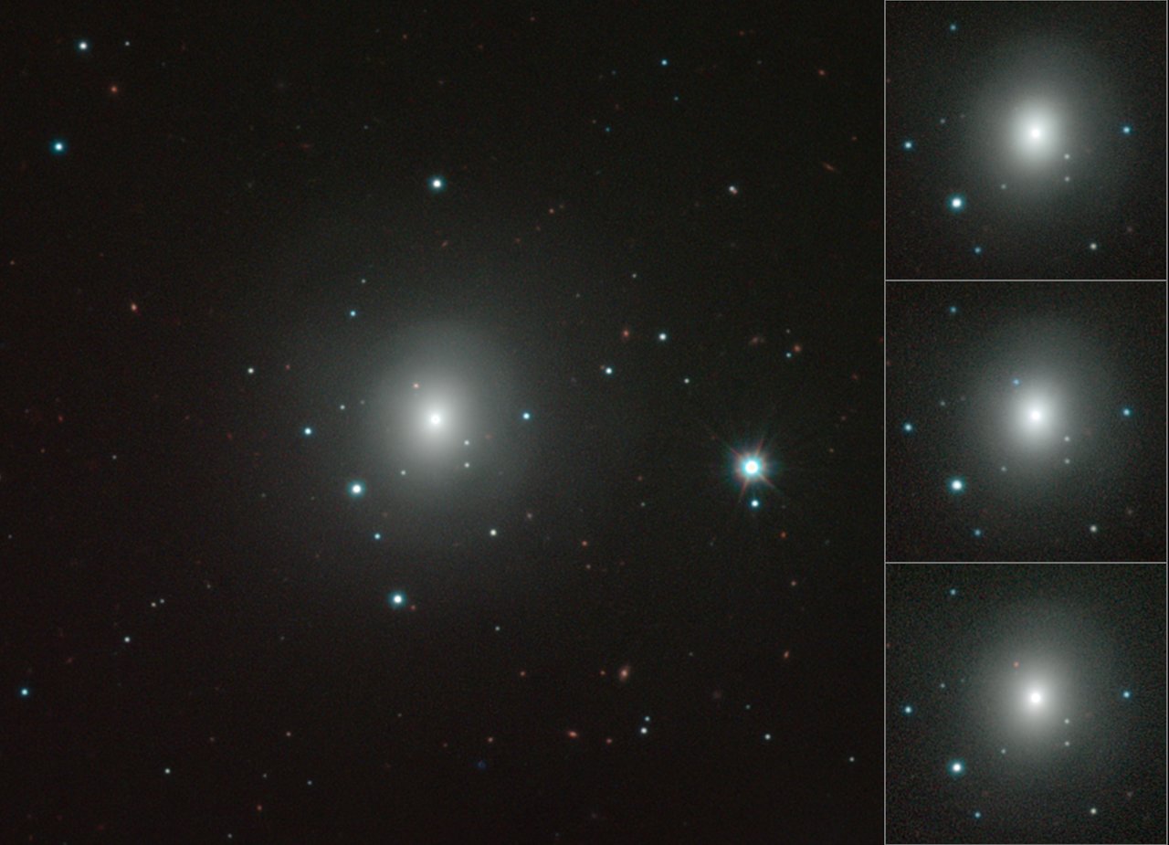 Mozaika fotografii pokazuje, jak kilonowa w NGC 4993jaśniała, stawała się bardziej czerwona, a następnie jej blask spadał przez kolejne tygodnie po wybuchu 17 sierpnia 2017 r. Zdjęcia uzyskano przy pomocy teleskopu VISTA do przeglądów w podczerwieni, pracującego w Obserwatorium Paranal w Chile.