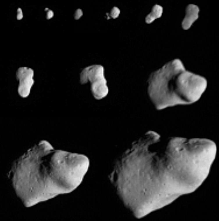 243 Ida. W kolejnych dwóch dekadach inne sondy wykonały kolejne przeloty obok planetoid. Udały się także próby lądowania, wejścia na orbity a nawet sprowadzenie próbek powierzchni na Ziemię. Przesłane obrazy ukazały ogólnie podobne charakterystyki powierzchni kształtów planetoid, ale nie zawsze. Niektóre planetoidy (np.: