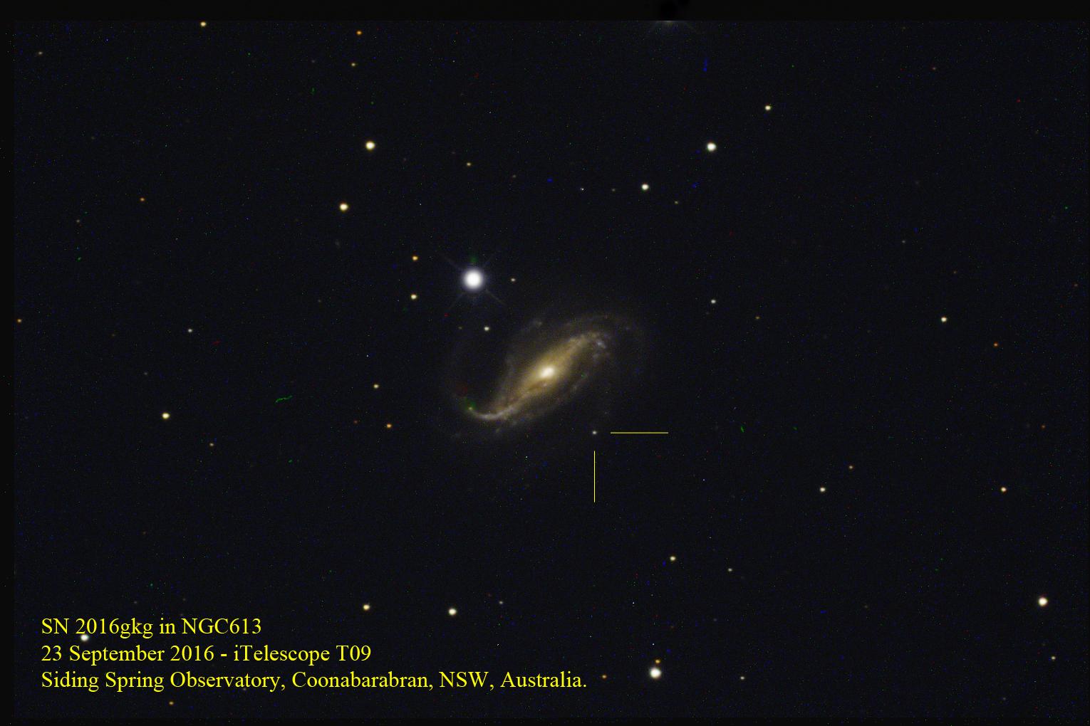 Obserwacja SN 2016gkg (23.09.2016)/ Credits - Siding Spring Observatory, Steve FutcherArgentyński astronom-amator zarejestrował wyjątkowe zjawisko: pierwsze światło widzialne supernowej. Zjawisko otrzymało oznaczenie SN 2016gkg. Analiza tej supernowej została właśnie opublikowana na łamach Nature.