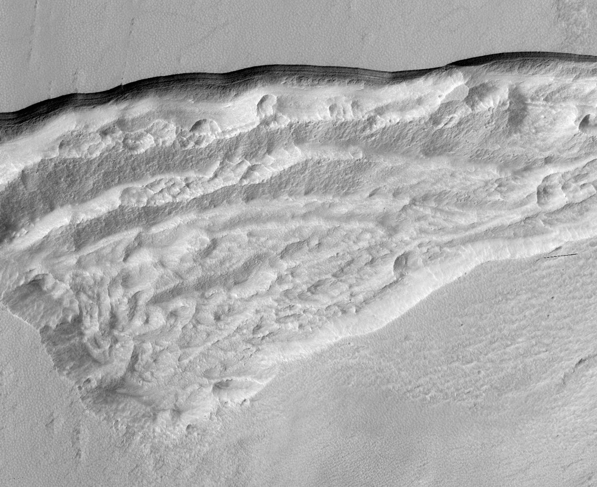 W styczniu 2018 NASA i Jet Propulsion Laboratory (JPL) poinformowały o wynikach bardzo ciekawych obserwacji wykonanych przez HiRISE. Przesłane obrazy pozwoliły na identyfikację ośmiu stromych stoków, u których zauważono odsłoniętego warstwy lodu wodnego. Stoki znajdują się daleko od równika Marsa, zarówno na półkuli północnej, jak i południowej, na szerokościach około 55-58 stopni. Nachylenie tych stoków sięga nawet 55 stopni.