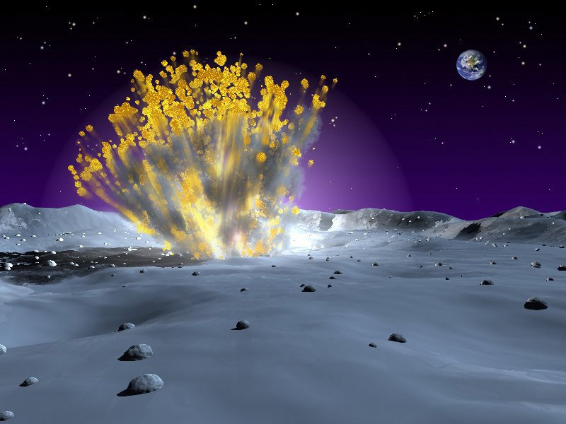 Artystyczna wizja uderzenia małego obiektu w Księżyc / Credits - NASASiedemnastego i osiemnastego lipca dwa małe obiekty uderzyły w Księżyc. Zjawiska zostały zarejestrowane przez projekt Moon Impacts Detection and Analysis System. Meteoroidy, czyli obiekty mniejsze od 10 metrów często naruszają przestrzeń pomiędzy Ziemią a Księżycem. Zwykle takie obiekty nie są wykrywane, z uwagi na bardzo niską jasność. W przypadku naszej planety czasem dochodzi do rejestracji zjawiska w postaci meteoru lub znacznie jaśniejszego bolidu – zwykle drobnych odłamków skał, które płoną w ziemskiej atmosferze. W przypadku Księżyca dochodzi do uderzeń w powierzchnię. Takie zjawiska można zarejestrować za pomocą kamer i teleskopów jako krótki błysk światła.