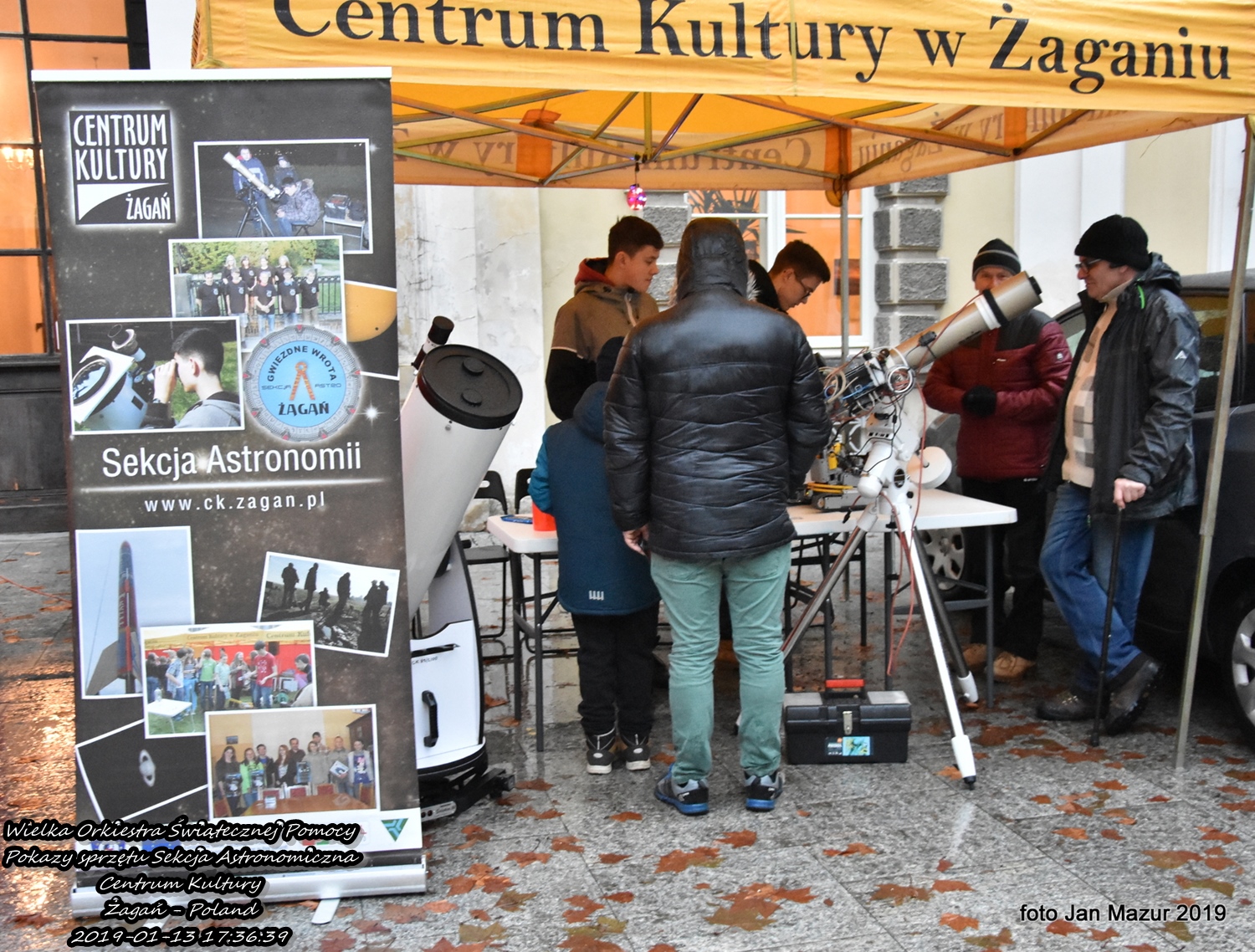 Niedzielna pogoda nie zachęcała do spacerów. Aby zachęcić mieszkańców Żagania do wyjścia z domu i kwestowania do puszek na rzecz Wielkiej Orkiestry świątecznej pomocy miłośnicy astronomii sekcji astronomicznej Centrum Kultury zorganizowali pokazy sprzętu.