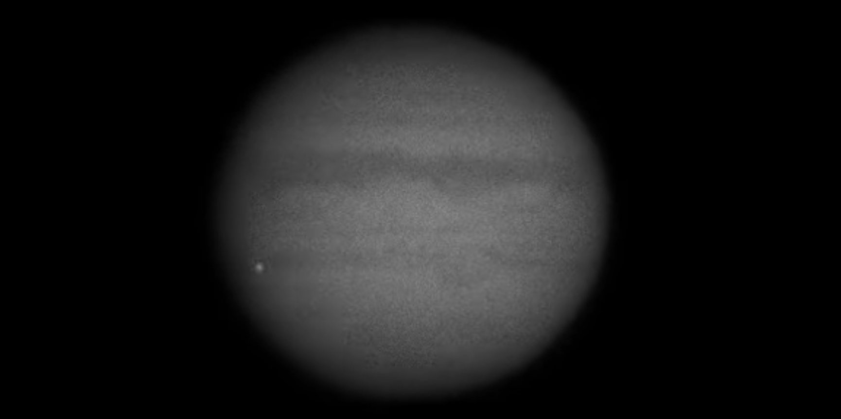 Moment prawdopodobnego uderzenia małego obiektu w Jowisza - 07.08.2019 / Credits - Ethan ChappelSiódmego sierpnia 2019 w atmosferze Jowisza prawdopodobnie spłonął mały obiekt.