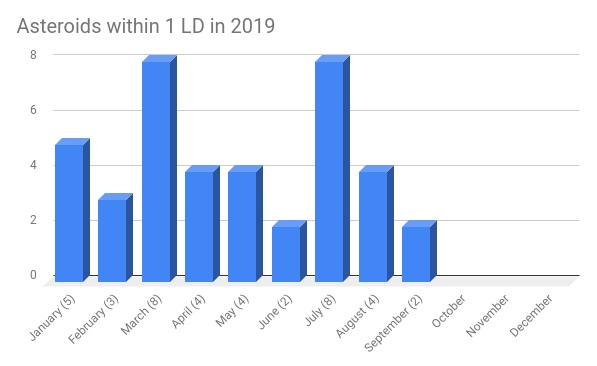 Jest to 43 i 44 bliski (wykryty) przelot planetoidy lub meteoroidu w 2019 roku. W 2018 roku wykryć bliskich przelotów było przynajmniej 73. Rok wcześniej takich wykrytych przelotów było 53. W 2016 roku wykryto przynajmniej 45 bliskich przelotów, w 2015 było ich 24, a w 2014 roku 31. Z roku na rok ilość odkryć rośnie, co jest dowodem na postęp w technikach obserwacyjnych oraz w ilości programów poszukiwawczych, które niezależnie od siebie każdej pogodnej nocy “przeczesują” niebo. Pracy jest dużo, gdyż prawdopodobnie planetoid o średnicy mniejszej od 20 metrów może krążyć w pobliżu Ziemi nawet kilkanaście milionów.