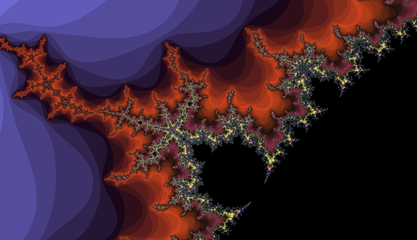 Jednym ze sławniejszych fraktali jest zbiór Mandelbrota. Tu widać jego fragment, gdzie zauważalne jest samopodobieństwo w tym obiekcie. Wygenerowany programem XaosFraktal to obiekt, którego fragment w powiększeniu wygląda podobnie jak całość. Strukturę fraktali odkryto już w białkach, graniach gór, sygnale z giełdy, plamach słonecznych czy nawet obrazach Jacksona Pollocka. O tym, czego szukają we fraktalach fizycy, mówi prof. Paweł Oświęcimka.