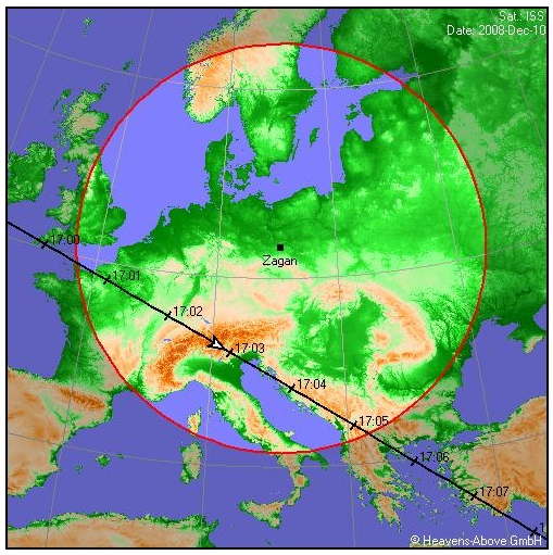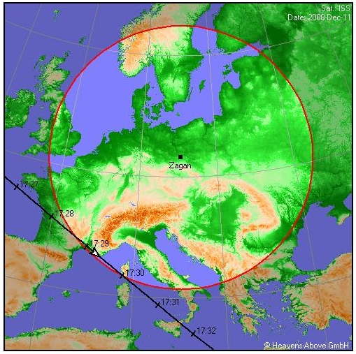Od dnia jutrzejszego proponuję wszystkim obserwacje przelotu stacji orbitalnej ISS. Zależnie od orbity stacji można ją zobaczyć w różnych miejscach nieba. Poniższe dane powinny pomóc przygotować się do obserwacji. Sama obserwacja nie jest specjalnie uciążliwa. Stację można zobaczyć nawet z centrum naszego miasta. Poniższe dane odnoszą się dla Żagania. Mieszkańcy innych miast mogą mieć odchylenia od czasu przelotu do kilku minut w zależności od oddalenia od Żagania.