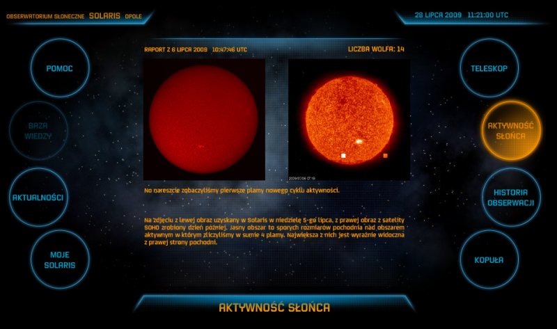 Aktywność Słoneczną poprzez porównanie obrazów z teleskopu z obrazami z SOHO. Jest dostępna