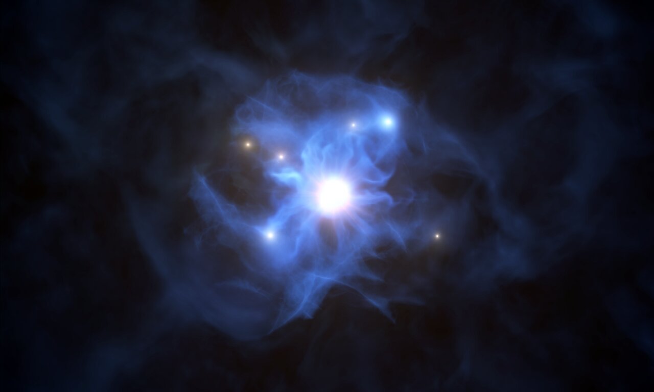 Przy pomocy należącego do ESO teleskopu VLT astronomowie odkryli sześć galaktyk znajdujących się wokół supermasywnej czarnej dziury, gdy Wszechświat miał mniej niż miliard lat. Po raz pierwszy tego typu zgrupowanie zostało zaobserwowane tak wcześnie po Wielkim Wybuchu. Wyniki badań pomogą nam lepiej zrozumieć, w jaki sposób supermasywne czarne dziury, z których jedna rezyduje w centrum Drugo Mlecznej, formowały się i tak szybko rosły do swoich gigantycznych rozmiarów. Rezultat wspiera teorię, że czarne dziury rosną szybko w wielkich strukturach przypominających sieć, które zawierają mnóstwo zasilającego je gazu.