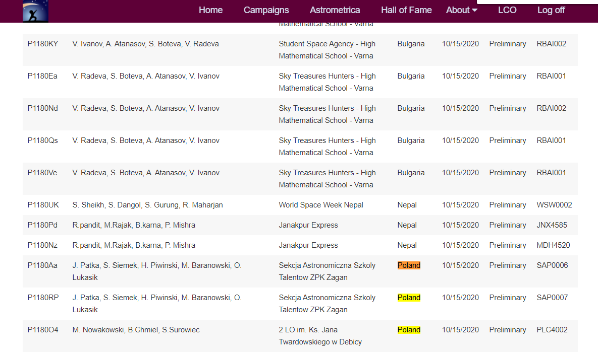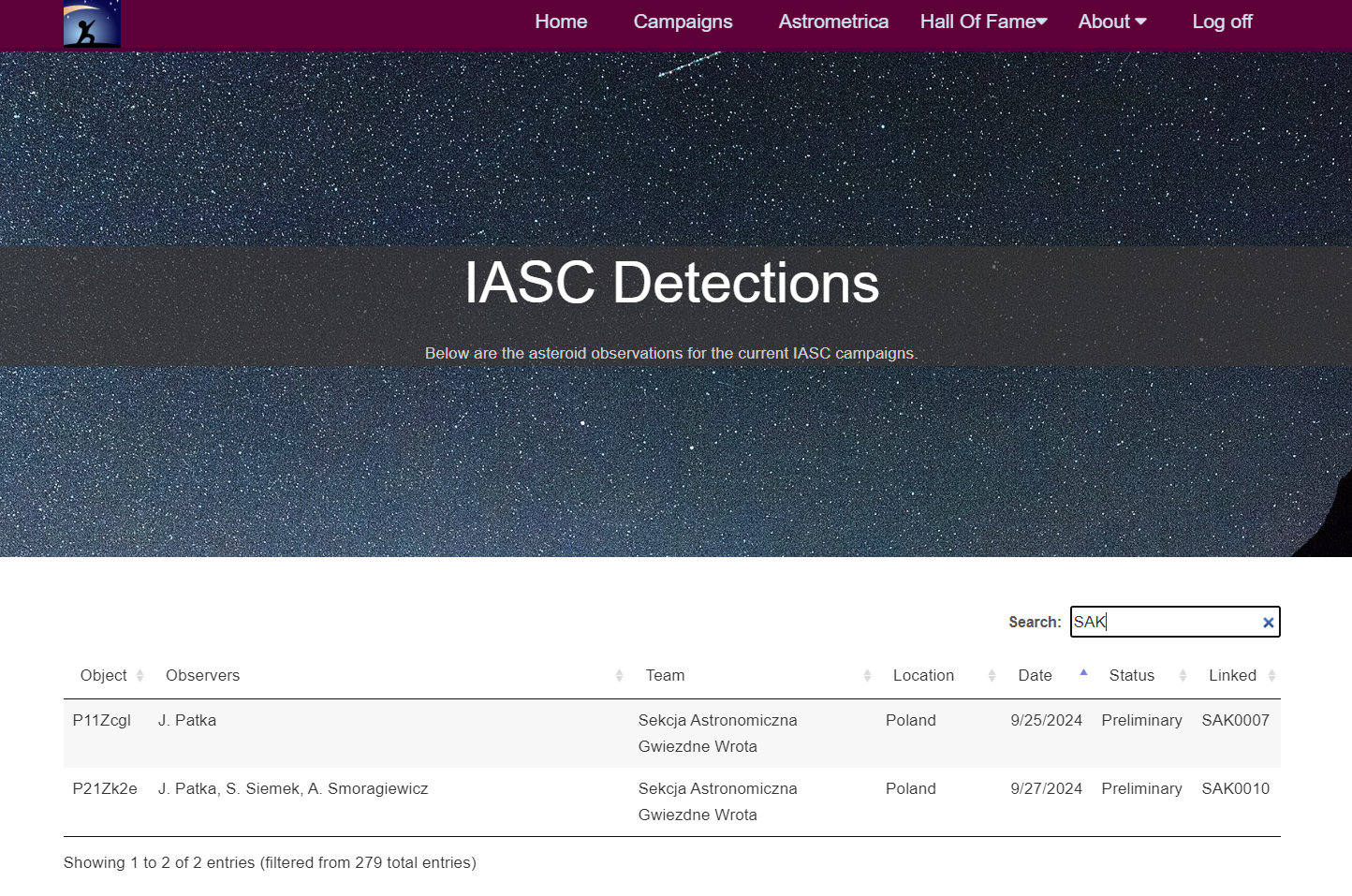 Nasz udział w projekcie poszukiwania planetoid w US.