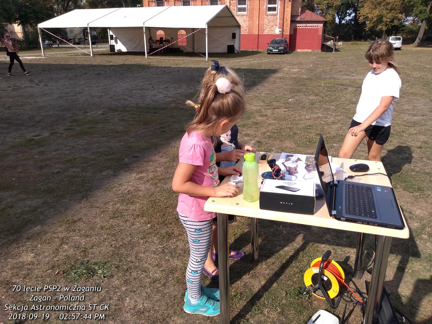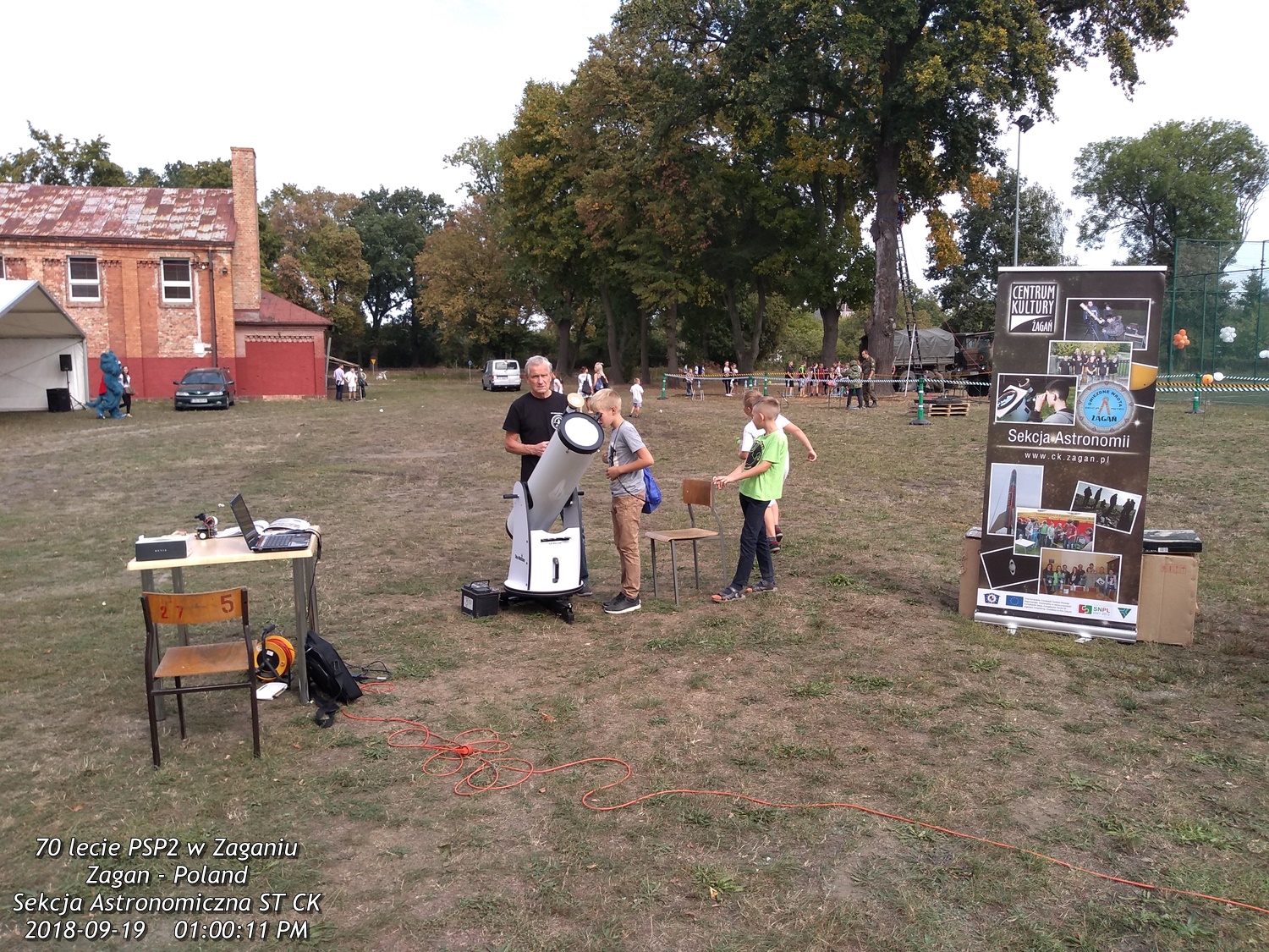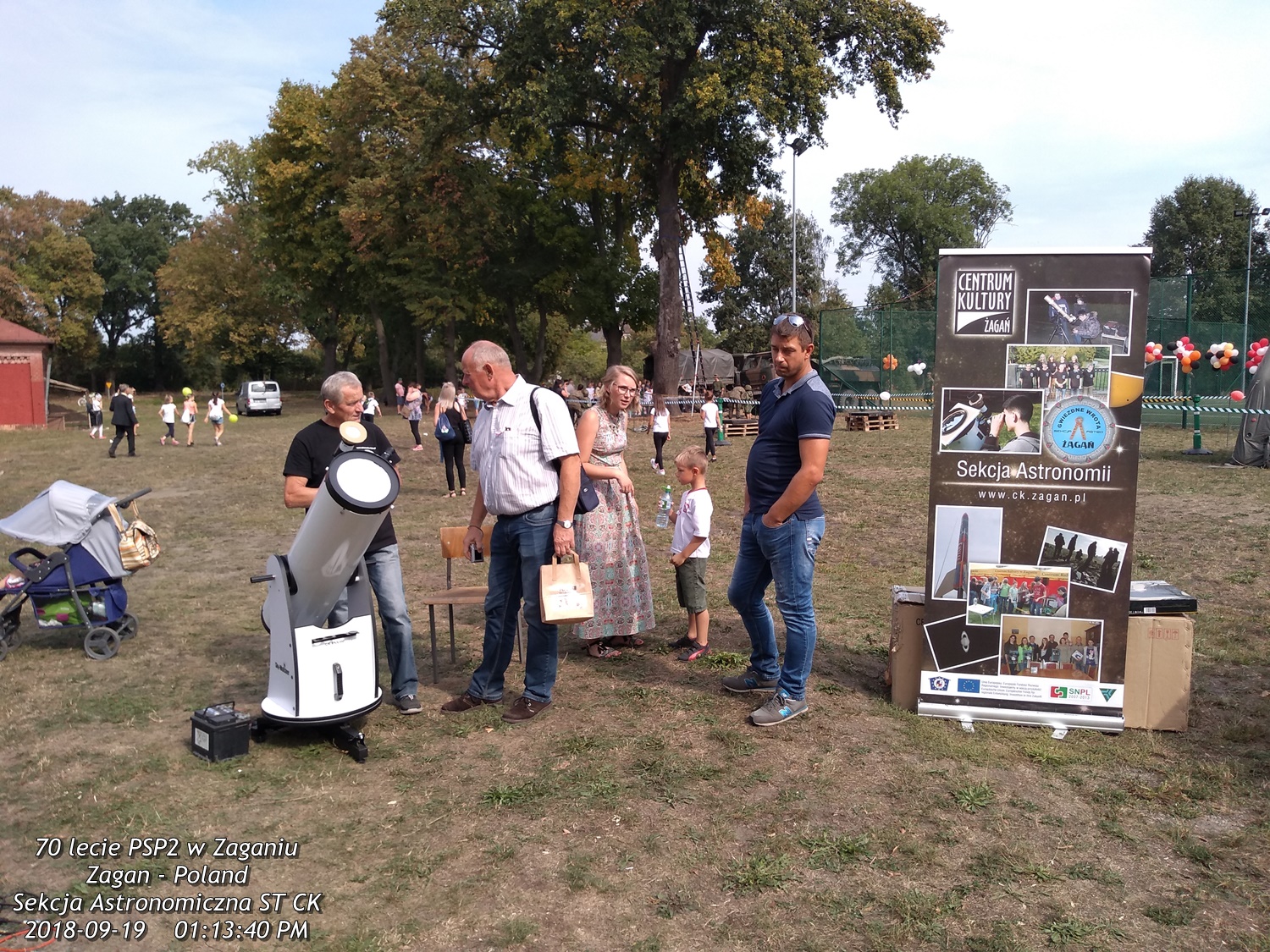 W czasie obchodów 70 lecia PSP2 w Żganiu odbył się festyn szkolny w ramach którego Sekcja Astronomiczna Centrum Kultury zorganizowała pokazy Słońca oraz meteorytów. Można było też zobaczyć działanie robota AlphaBot2 Pi oraz obserwować widmo naszej gwiazdy za pomocą szkolnego spektroskopu.