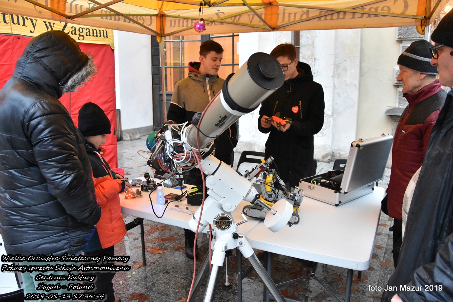 Niedzielna pogoda nie zachęcała do spacerów. Aby zachęcić mieszkańców Żagania do wyjścia z domu i kwestowania do puszek na rzecz Wielkiej Orkiestry świątecznej pomocy miłośnicy astronomii sekcji astronomicznej Centrum Kultury zorganizowali pokazy sprzętu.