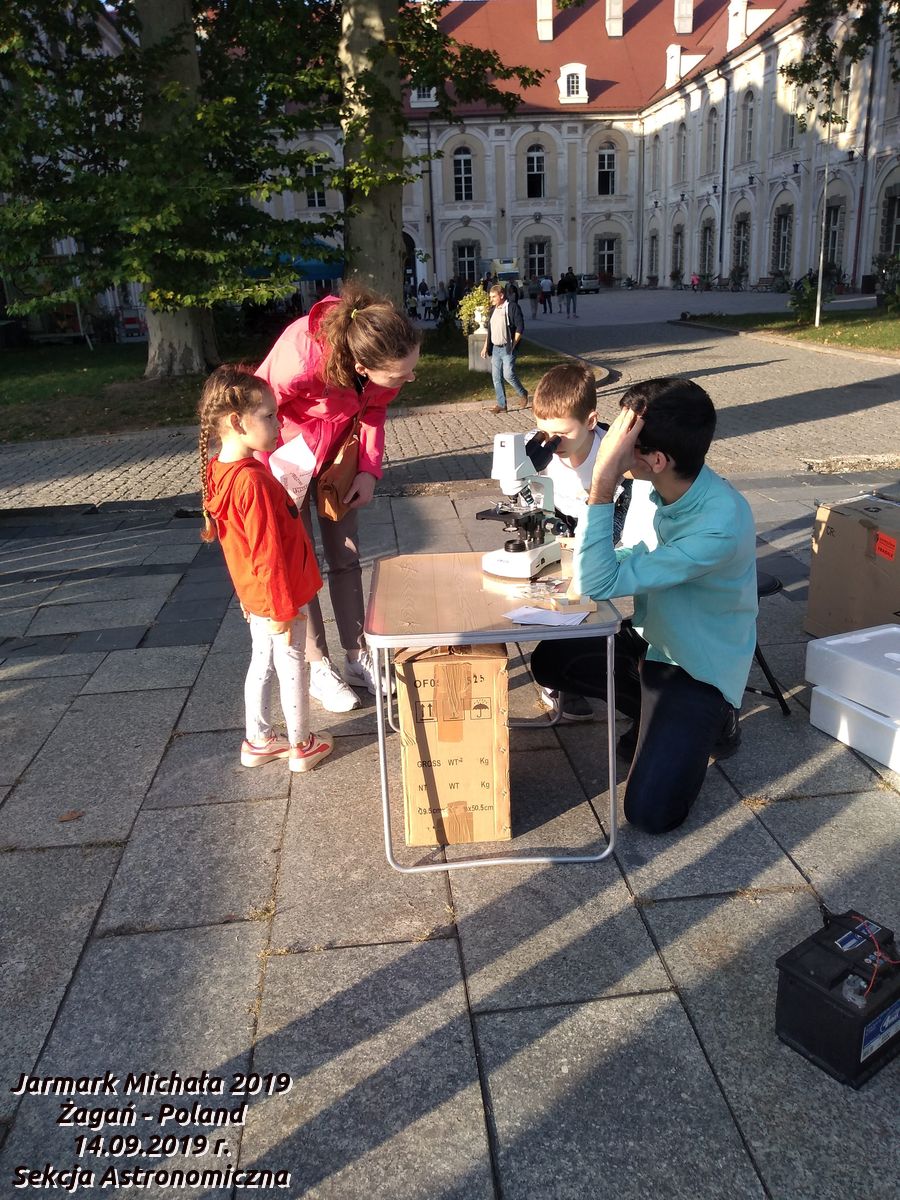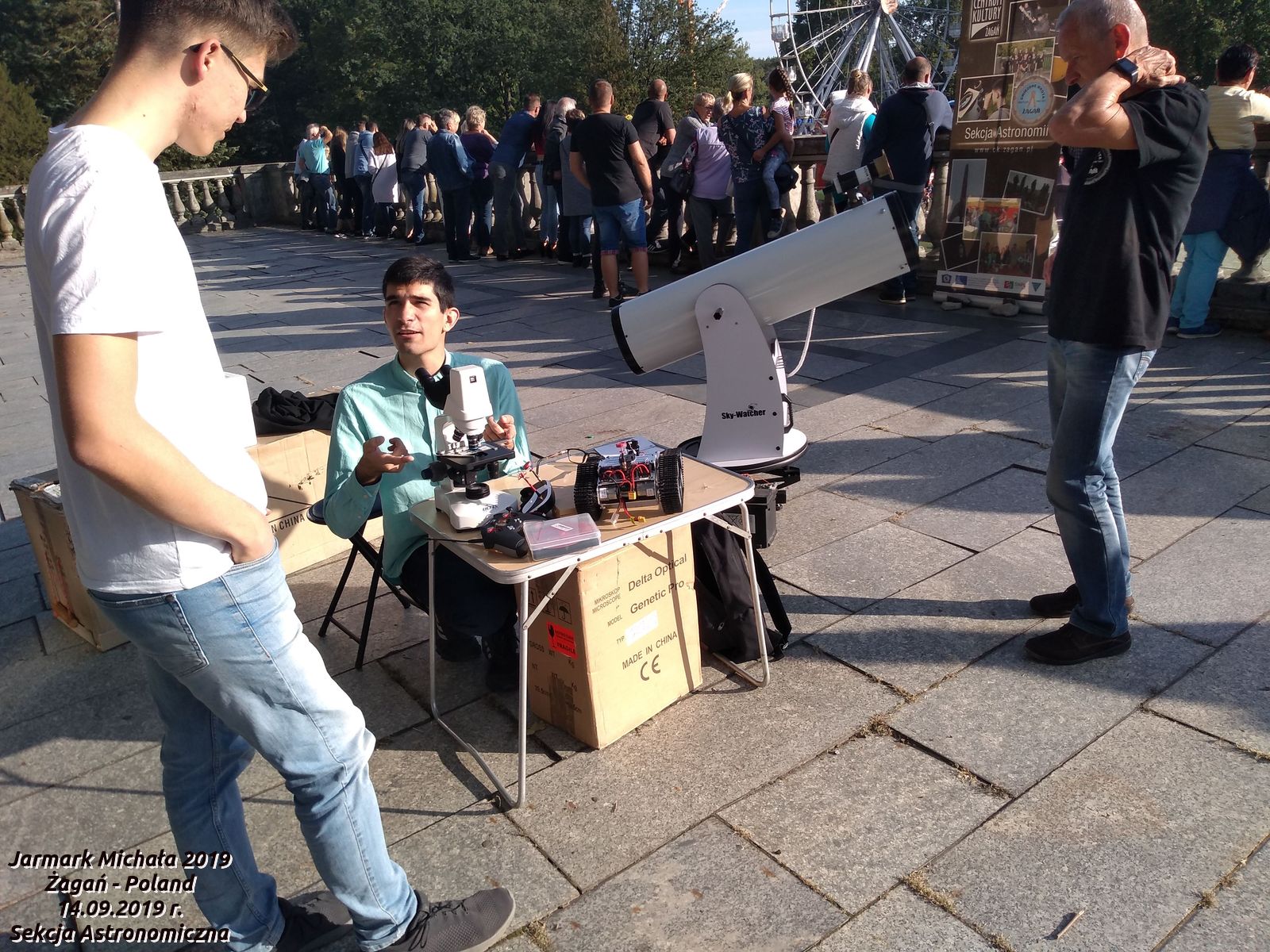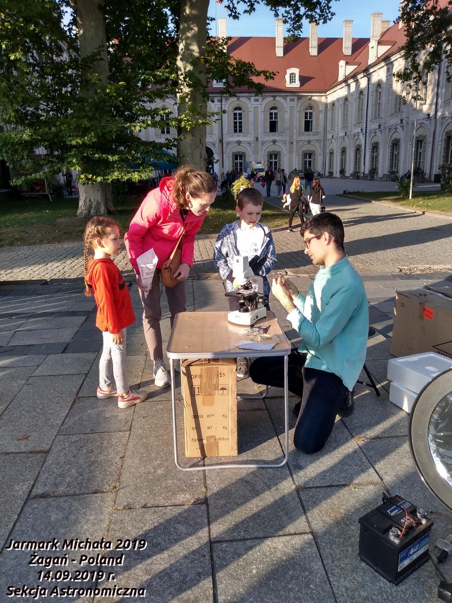 Oto coroczny Jarmark Michała. Tym razem w roku 2019 Sekcja Astronomiczna zaprezentowała mieszkańcom Słońce, mikrokosmos przez mikroskop oraz zabawy z robotem czyli trochę elektronicznej inteligencji.