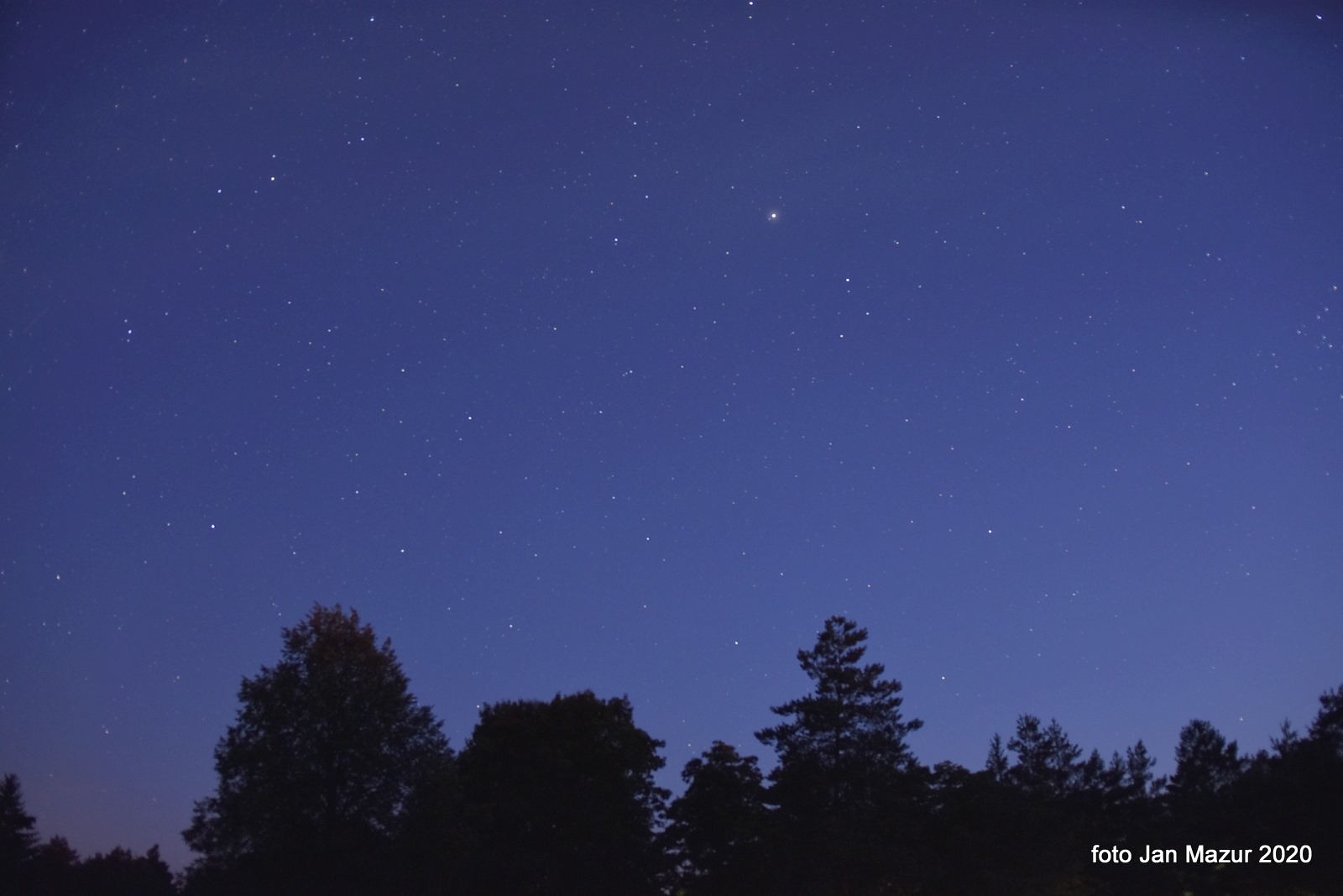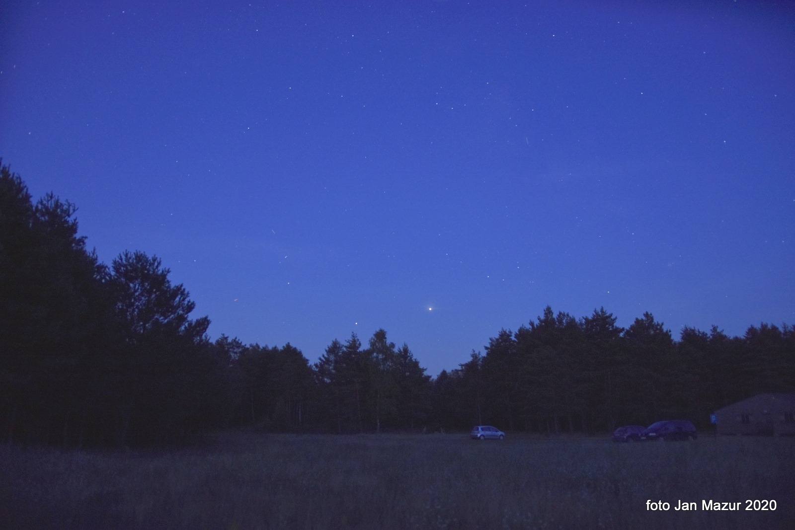 Na południu Jowisz i Saturn. A na północy tuż nad chmurami majaczyła w blasku miasta kometa C/2020 F3 NEOWISE |