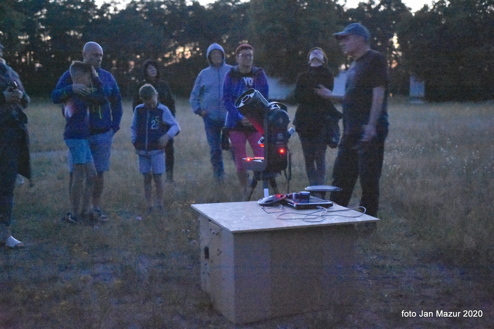 14 lipca 2020 to dzień opozycji Jowisza w 2020 roku. Wakacje to dobra pora na takie spotkania. Pogoda dobra choć komarów i innych robaczków bez liku. O 22 nieco spokoju od nich. Ale gdy z powodu COVID-19 uruchomiliśmy komputer z kamerą CCD do obserwacji planet, wszystko co lata i bzyczy wróciło.