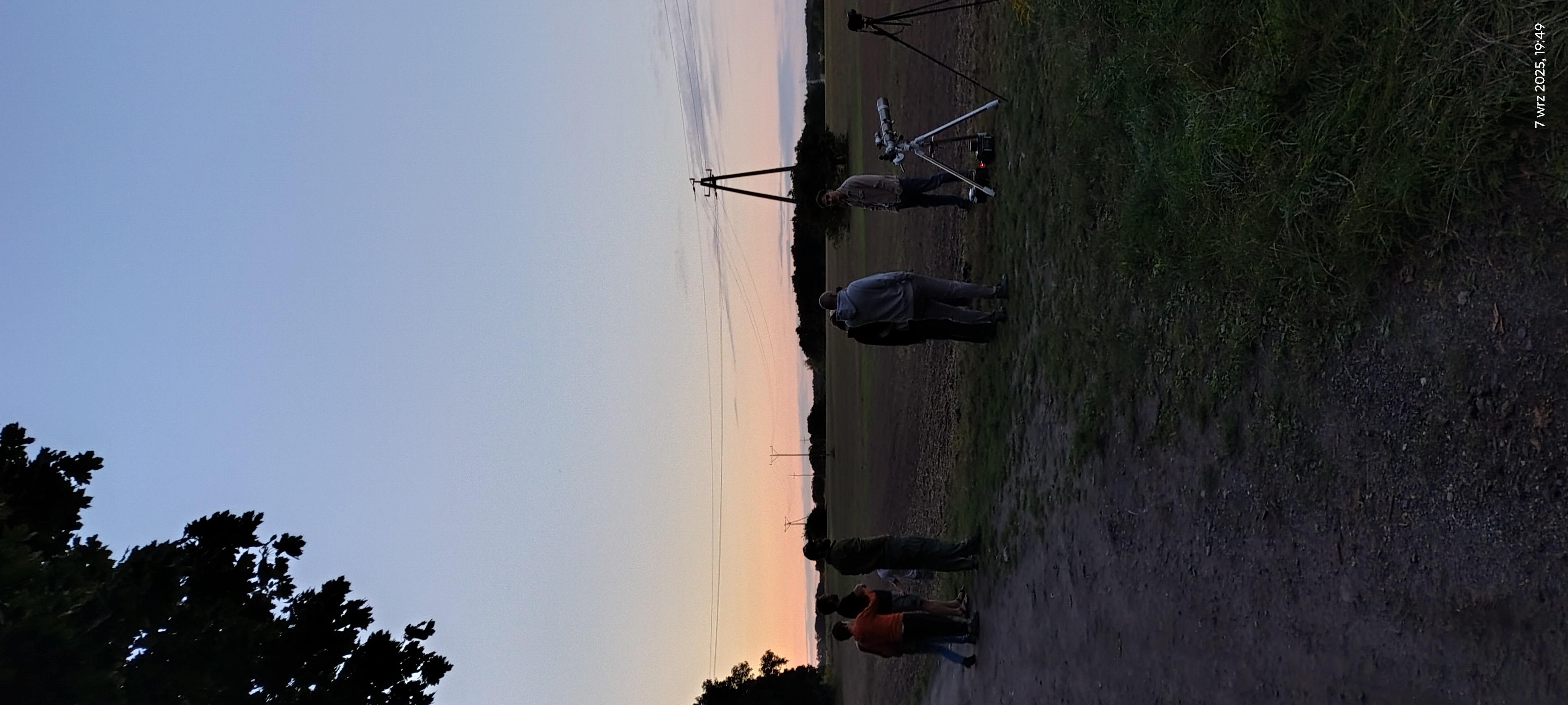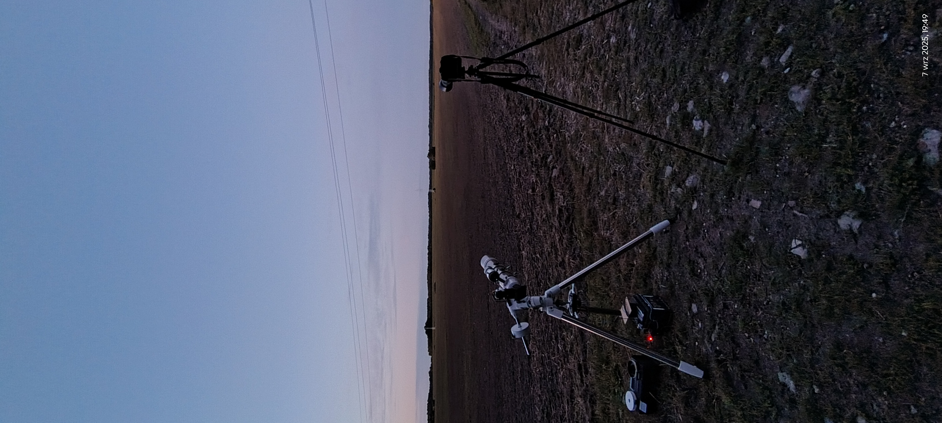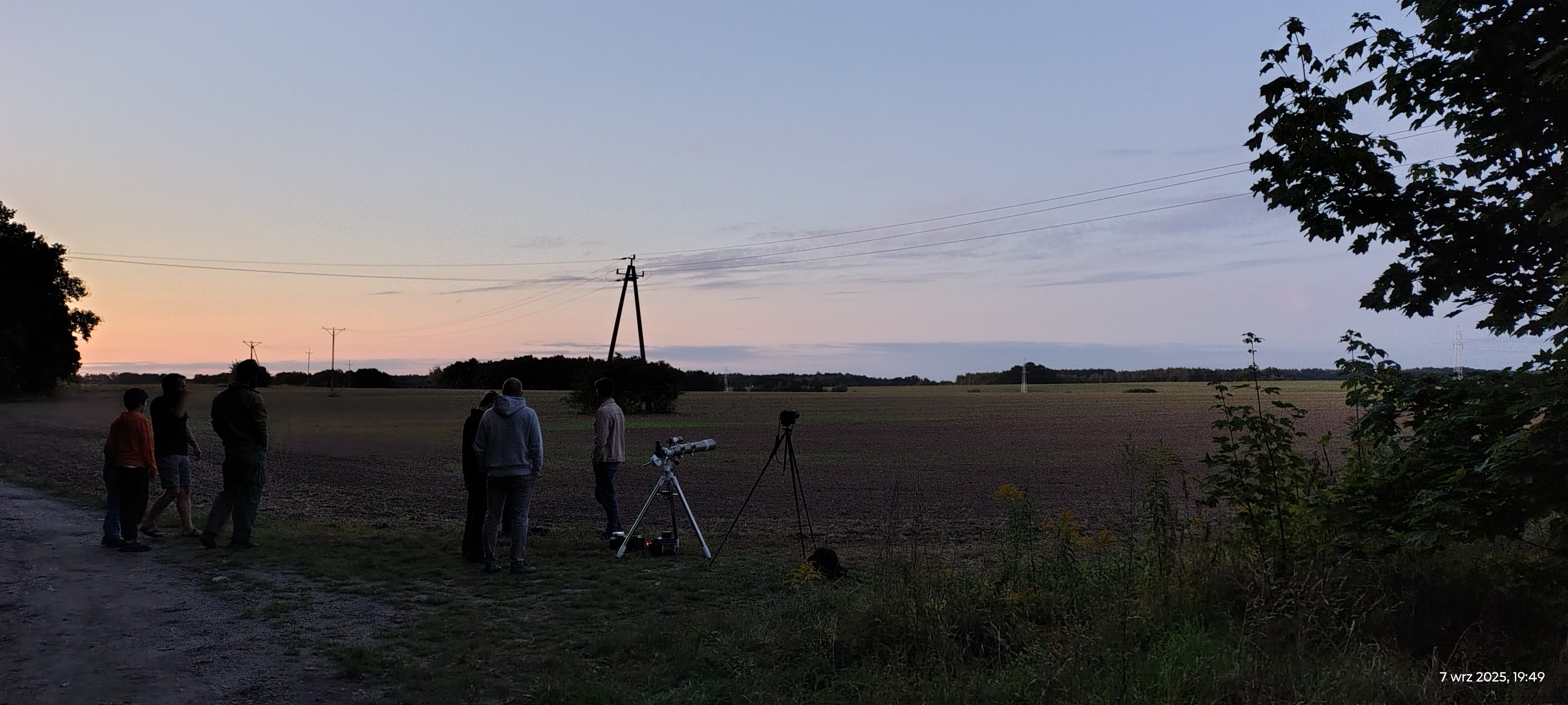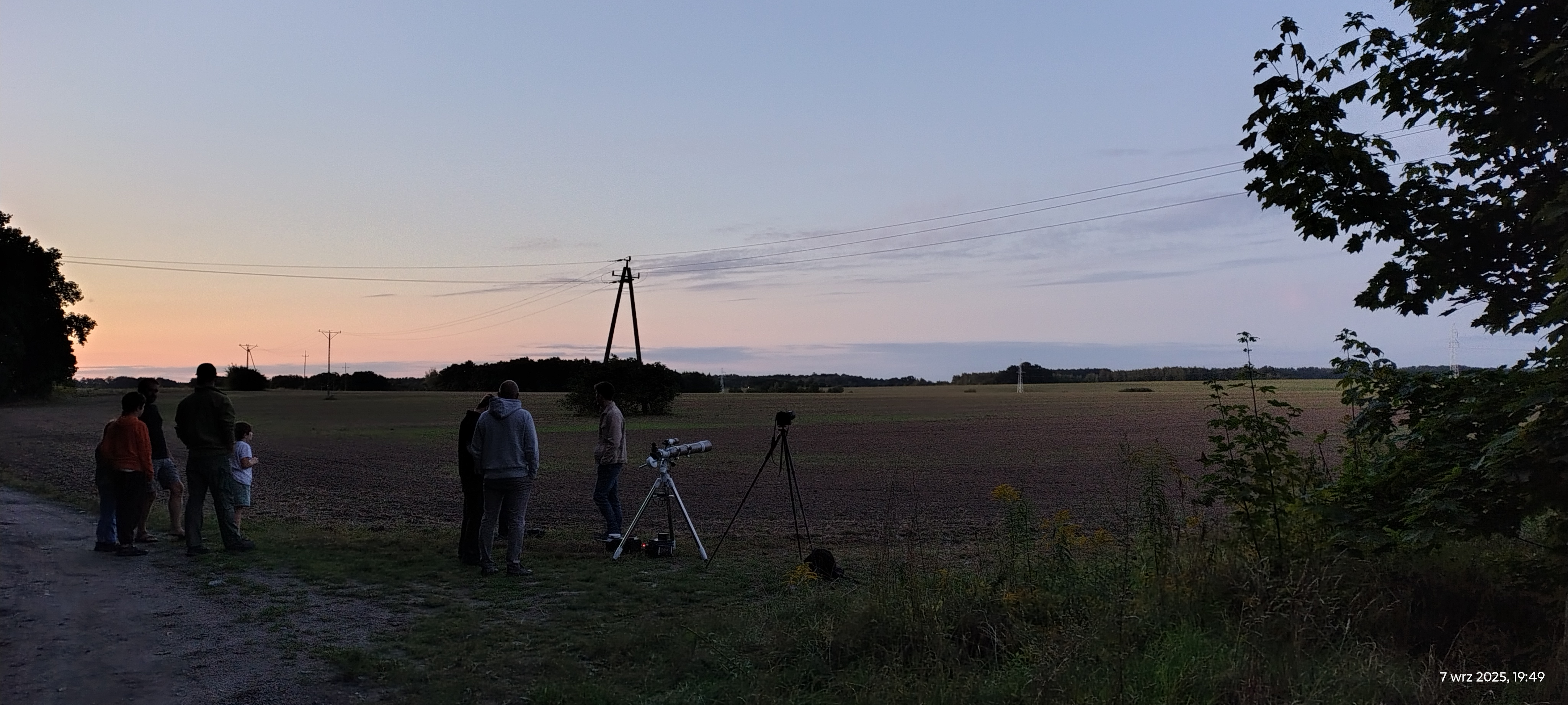 Warunki obserwacyjne dobre, choć nad horyzontem zachmurzenie. Wcześniejsza zła pogoda nie pozwoliła przetestować przygotowań i wschód Księżyca nieco zaskoczył nas kierunkiem obserwacji. Szybko przenieśliśmy się kilka kroków dalej i już spokojnie mogliśmy prowadzić obserwację. |