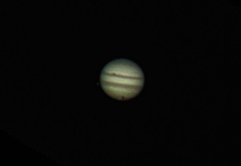 31-10-2011 w układzie Jowiszowym doszło do niecodziennego zdarzenia a mianowicie podwójnego przejścia księżyców przez tarcze planety. W zdarzeniu tym brały udział dwa księżyce Jowisza: Io i Ganimedes. Jak zwykle wybraliśmy się z kolegą Darkiem i moim synem Piotrem na pobliską łąkę aby obserwować i zarejestrować to wydarzenie. Wcześniej o godz 17:27 obserwowałem jeszcze przez lornetkę zakrycie gwiazdy Xi2 sagittari. Na łąkę dojechaliśmy ok 18:30 zdążyliśmy rozstawić sprzęt, Teleskop Tał i lornetę Vixen i już mieliśmy pierwszą obserwację czyli odkrycie gwiazdy którą Księżyc przesłonił godzinę wcześniej. Potem skupiliśmy się już na przejściu księżyców na tle Jowisza. Co prawda mgła przegoniła nas pod koniec całego zjawiska ale i tak bardzo nam się podobało. Oto kilka zdjęć z tego wieczoru. Mariusz Rudziński