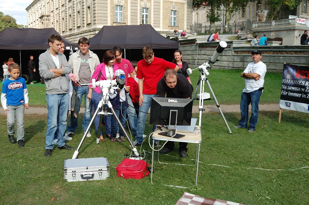 Na Jarmarku Michała uruchomiliśmy Astrobaze Kepler1 jako stoisko astronomiczno-naukowo-edukacyjne. Pokazaliśmy przedsmak możliwością jakie stoją przed tego typu projektem. Mamy zamiar to rozwijać, by za rok, gdy stanie już prawdziwa Astrobaza w Żaganiu można było tylko działać i działać. Przy okazji dziękujemy naszym przyjaciołom z IA UZ i Mariuszowi za pomoc i współudział w tym przedsięwzięciu.