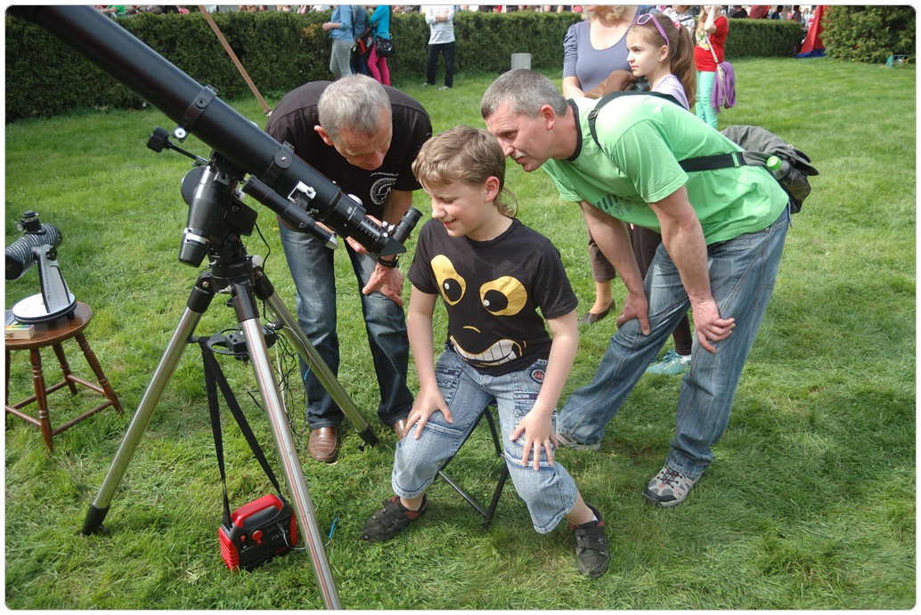 Na majówkę 2013 w dniu 4 maja przygotowaliśmy niespodziankę. Spotkanie po latach .... z SONDĄ. Były doświadczenia i pokazy, wybuchy i implozje, a nawet sięgnęliśmy gwiazd ... no jednej gwiazdy, ale za to jakiej? Na naszym Słońcu czekały na nas plamy i to całkiem sporo.