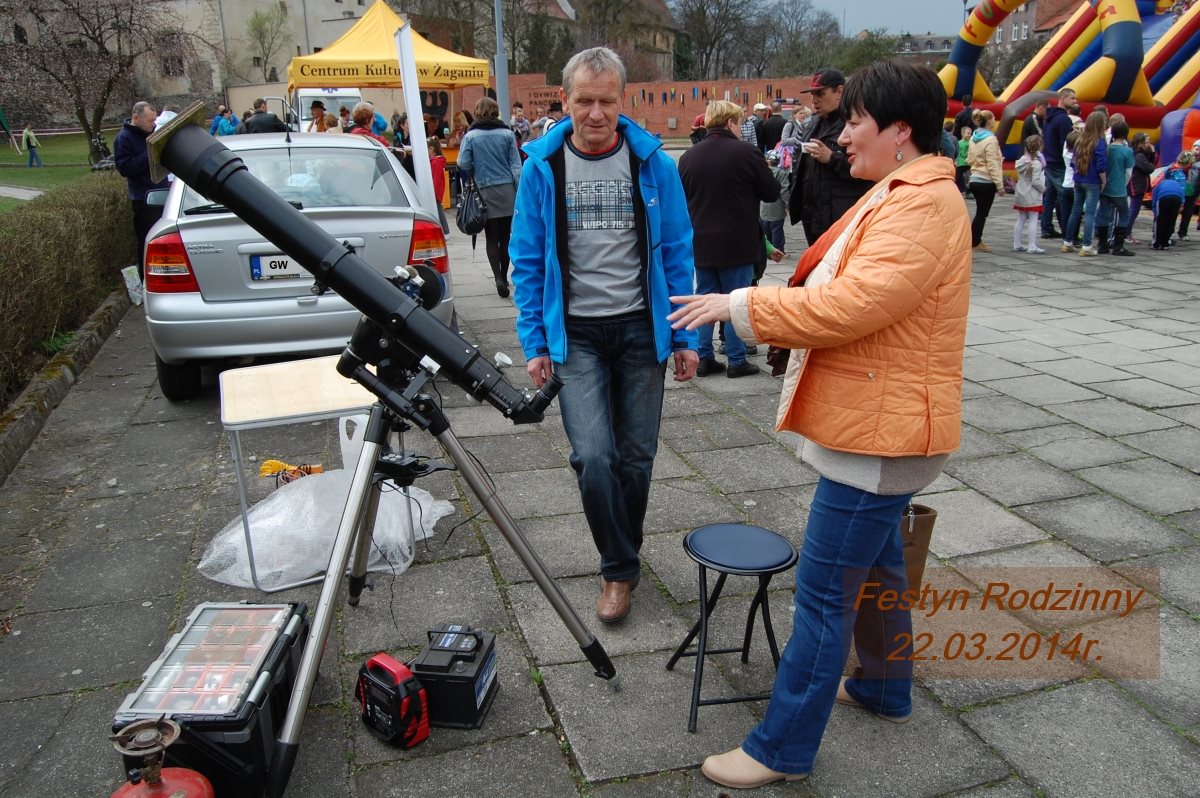 W dniu 22 marca 2014r. od 11:00 do 14:00 odbył się w Żaganiu na Placu gen. Maczka Festyn Rodzinny. W jego ramach przygotowaliśmy pokazy Słońca i prezentację doświadczeń fizycznych. Zaprezentowaliśmy tez mieszkańcom nasz Astrokalendarz 2014r. Każdy kto odpowiedział na nasze pytania konkursowe otrzymał egzemplarz tego wyjątkowego wydania.