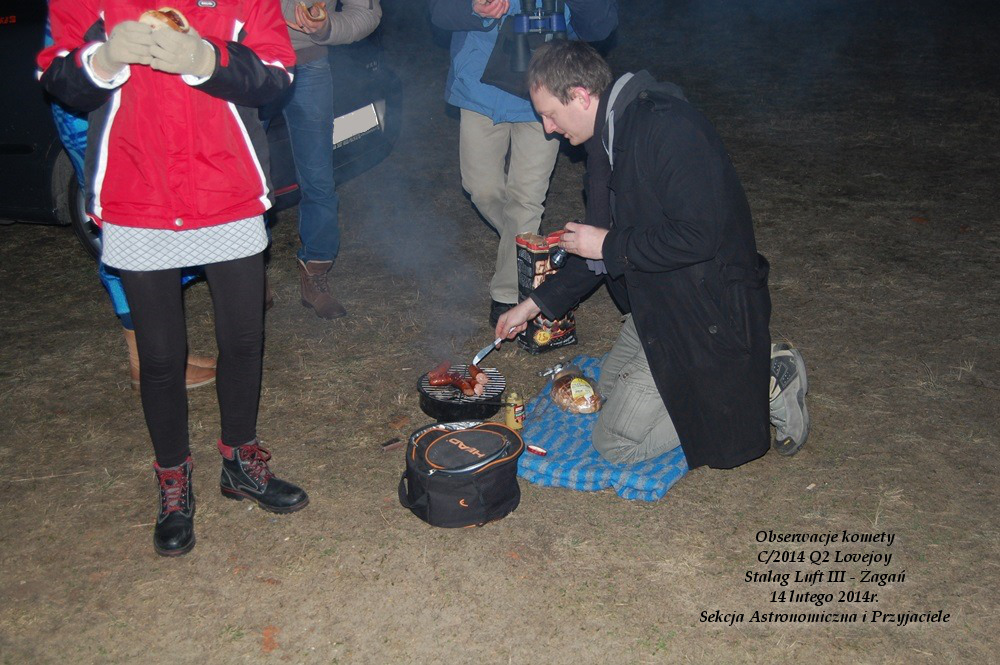 Zajęcia były w sesji wyjazdowej .... na miejsce lokalizacji przyszłego Obserwatorium Astronomicznego Keplera w Żaganiu - Lotników Alianckich. Do naszego wypadu dołączyli nasi przyjaciele - Damian i znajomi. Wspólnie miło spędziliśmy czas zajęć w mroźny i pod wspaniałym, pełnym gwiazd niebem. Do tego ciepły grillowy posiłek przygotowany przez naszych przyjaciół świetnie się sprawdził w tych warunkach. Długo będziemy pamiętać ten miły wieczór. |