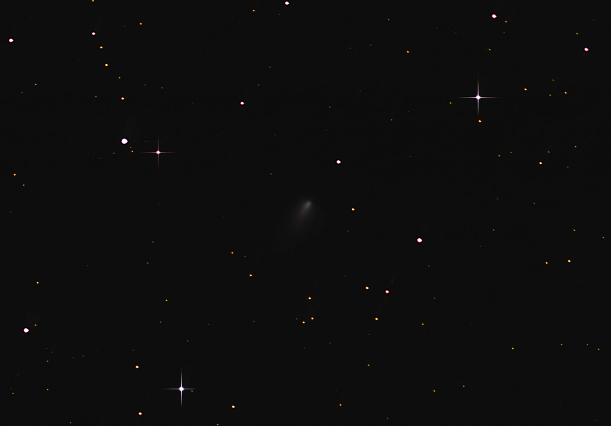 48 zdjęć po 90s każde i 66 Darków. Nie jest to możne szczyt astro foto kometarnego ale jednak ustrzeliłem kometę 168P/Hergenrother która oddalając się już od Ziemi, na do widzenia nieco pojaśniała i dała się sfotografować w gwiazdozbiorze Pegaza. W tej chwili oddalona jest od Ziemi o 0,5 AU. I szybko, bo z prędkością ponad 35km/s oddala się od naszej planety.