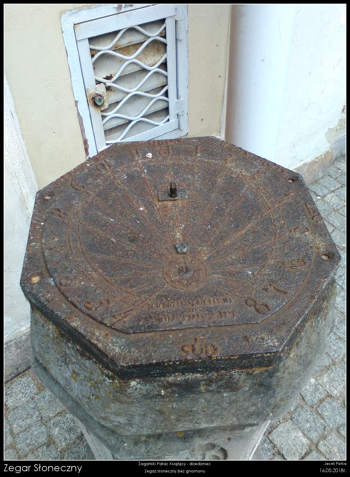 Na terenie Żagańskiego Pałacu Książęcego ul. Szprotawska 4 ustawiony jest na dziedzińcu zabytkowy zegar słoneczny.