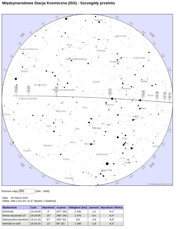 Planowany przelot ISS nad Żaganiem do obserwacji przez sekcję