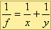 Jeśli przez y oznaczymy odległość obrazu od soczewki to wartości x, y oraz f spełniają równanie soczewki: